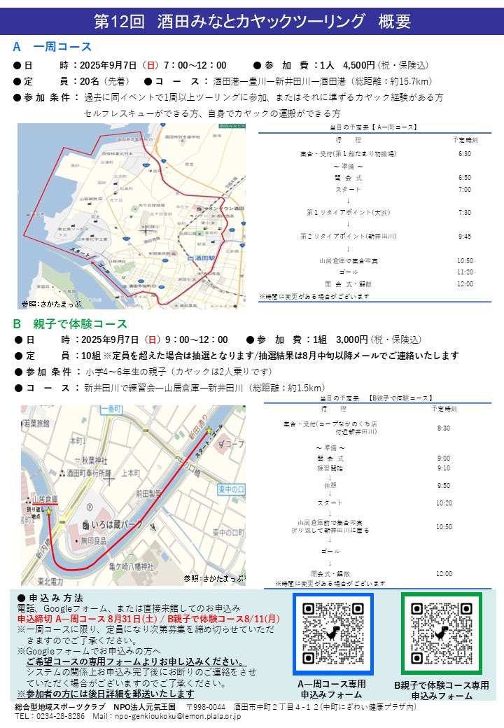 第12回酒田みなとカヤックツーリング 参加者募集中!